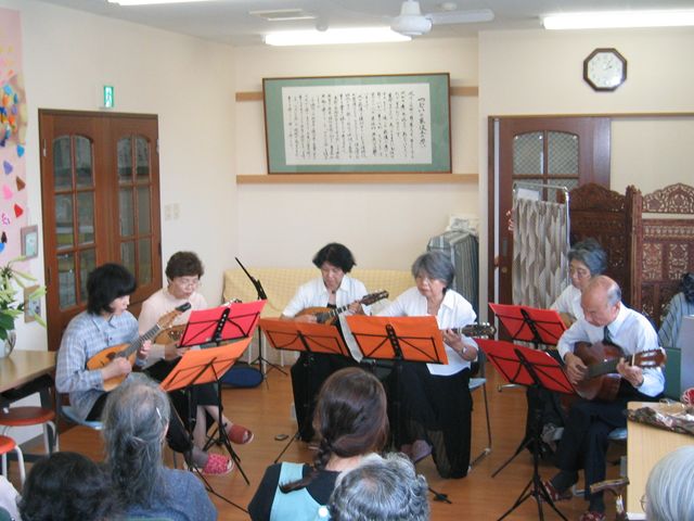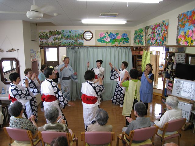 利用者とスタッフ+ボランティアの数が同じ位のにぎやかな所です。予防介護にも力を入れています。