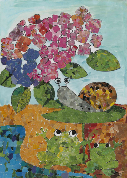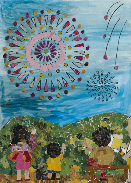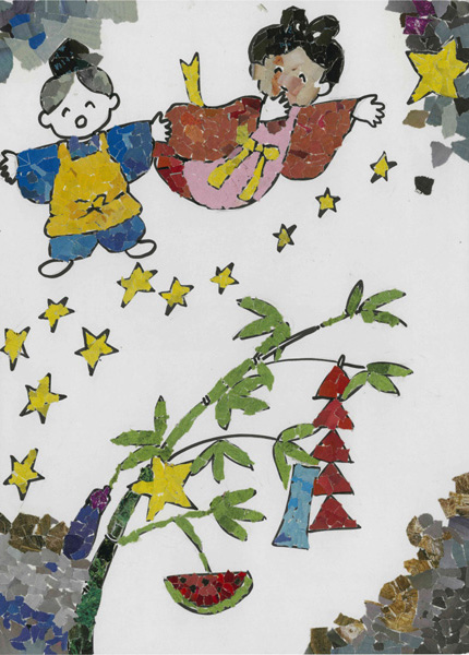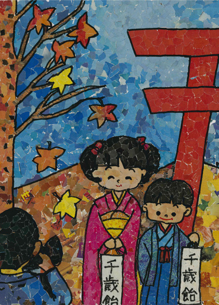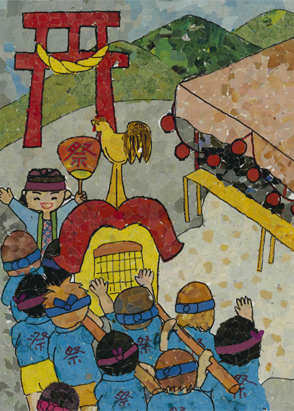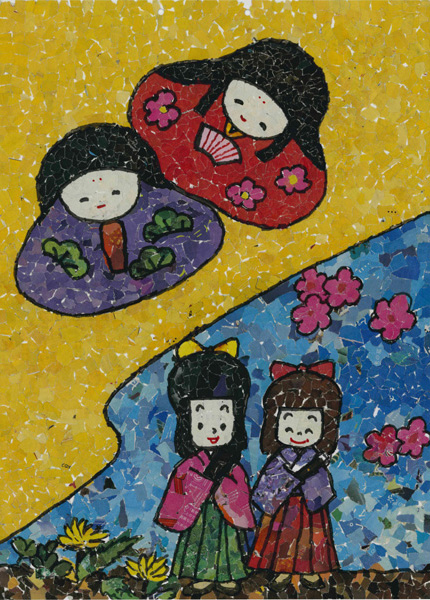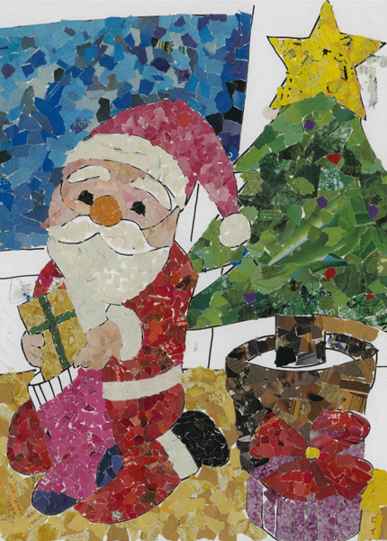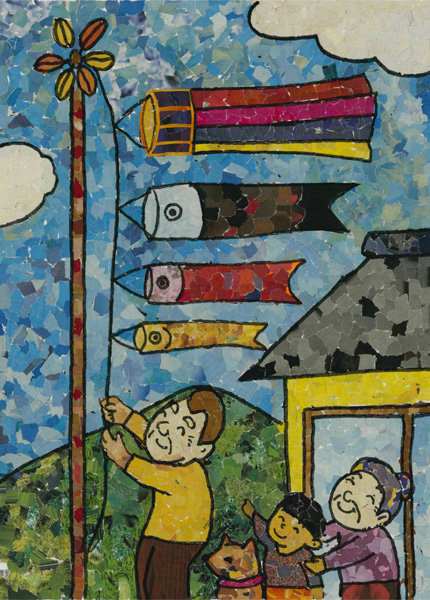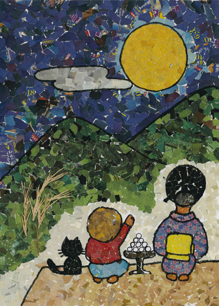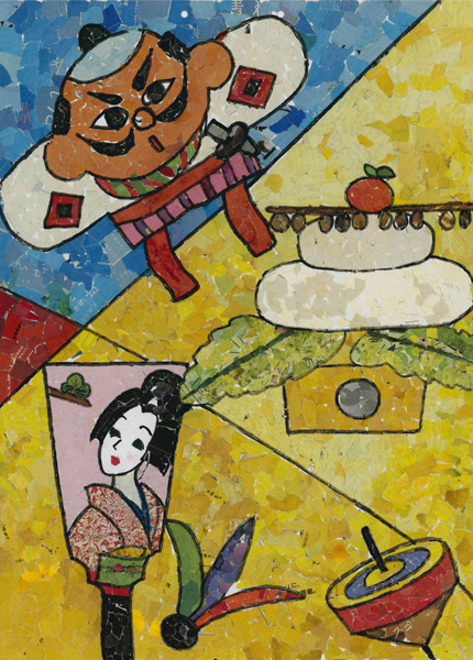 日替わりカレンダーで今も使われています 新聞のカラー部分の貼り絵が奥深いです